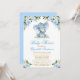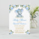 Invitación Baby Shower Elephant Bow Blue Floral Gold