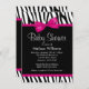 En esta divertida invitación a la ducha de bebé de 4,5" x 6,25" se muestra un moderno patrón de cebra en blanco y negro con un gráfico de arco rosado. Perfecto para una pequeña ducha de bebé.Los diseños son ilustraciones/gráficos impresos - NO RIBBON REAL.