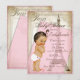 Invitación de baby shower vintage París con adorable bebé étnica con pañal y lazo rosa sobre un bonito fondo de la torre Eiffel vintage. Puede personalizar fácilmente este baby shower de París para su evento añadiendo sus datos en el estilo de letra y color, y redacción de su elección.