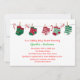 Una linda invitación para una ducha de bebé, neutra en género, con calcetines verdes y rojos en varios diseños de Navidades colgando de la ropa con arcos y dulces. (gráficos ©Cajoline-Sshit)