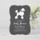 ¡Tira a un fiesta de caniche! ¡Incluya al hermano mayor o al bebé de piel de hermana en la celebración con este adorable diseño de ducha de caniche de perro caniche! Perfecto para un amante de los cachorros con un bebé en camino. El caniche francés se encuentra al lado de un adorable carruaje vintage. El fondo gris de la pizarra lo convierte en un lugar perfecto para una ducha de matrimonio o una ducha de matrimonio.