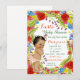 Invitación de baby shower de fiesta mexicana con una adorable bebé en un hermoso fondo de fiesta mexicana verde, naranja, rojo y azul. Estas invitaciones de baby shower de niñas con colores festivos se personalizan fácilmente para su evento simplemente agregando sus detalles en el estilo de fuente y color, redacción y diseño de su elección. También puede cambiar el color de fondo.