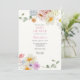 Invitación de Baby Shower con un borde de flores silvestres de acuarela. Personalice con la información de la futura mamá. Haga clic en "hacer clic para personalizar más" para cambiar el estilo, tamaño o color de la fuente.