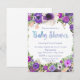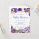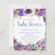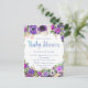 Invitación de baby shower de acuarela con hermosas flores rosadas y púrpuras en acuarela sobre un hermoso texto de acuarela pastel. Esta adorable invitación de baby shower floral de acuarela se personaliza fácilmente para su evento simplemente agregando sus detalles en el estilo de letra, color y redacción de su elección.