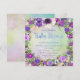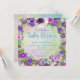 Invitación de baby shower de acuarela con hermosas flores rosadas y moradas sobre un bello fondo de acuarela pastel y letra de acuarela. Esta adorable invitación de baby shower floral de acuarela se personaliza fácilmente para tu evento con solo agregar tus datos en el estilo de letra, color y redacción que elijas.