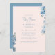 Invitación Baby Shower floral azul y rosa