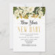 Invitación a Baby Shower de Año Nuevo Recién nacido Oro Blanco Floral