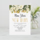 Invitación Baby Shower floral blanca de oro de Año Nuevo Reci