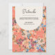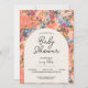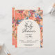 Vibrante, colorida invitación a la ducha de bebé llena de flores abstractas en tonos violeta, rosa, azul y blanco sobre un fondo de durazno. Ideal para el verano, la primavera y las duchas de chica. Personalizar el texto y la fuente, la escala del patrón y el color del arco que se encuentra debajo del texto. Gran opción para duchas florales, boho y femeninas para bebés.