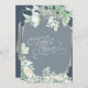Invitación de Baby Shower | Flores silvestres y bayas adornan un marco geométrico de terrario de cristal de borde dorado que tiene facetas de transparencia total -caligrafía blanca muy ornamentada dice Baby Shower en el centro- En la parte trasera están los detalles escritos en una combinación de fuentes modernas y de escritura - también en blanco - el fondo elegido es azul polvoriento de pizarra oscura, pero puede cambiarse para adaptarse a los colores fiestas - elija una sombra lo suficientemente oscura para permitir que el texto blanco. Diseño por WhimsicalArtwork™