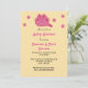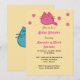 Un lindo personalizado dibujando un gatito rosado sonriente rodeado de puntos rosas en una invitación a la ducha de bebé.