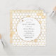 Invitación a la ducha con adornos de bebé de oro con un patrón de abeja dorada y abejas vibrantes. Personalice su información o haga clic en "Haga clic en el personalizar más adelante" para editar estilos de fuente, tamaño y colores.