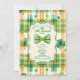 ¡Celebra tu paquete de alegría con una encantadora invitación de Baby Shower Lucky Little Shamrock! Perfecto para el Día de San Patricio o para una ducha de inspiración irlandesa, esta elegante y divertida invitación presenta encantadores motivos como las rocas de color agua, acentos dorados y un toque de suerte irlandesa. Características: Diseño: paleta verde y dorada con tréboles, arcos y una herradura afortunada para una fiesta de San Patricio. Estilo: caligrafía moderna con moda, diseños a la moda y ilustraciones acuáticos. Personalizable: Personalice los detalles, incluidos el nombre, la fecha, la hora, la ubicación y la información de RSVP. Ocasión: Ideal para las duchas de bebés que celebran a un niño, chica o un tema neutral como un "Pequeño Shamrock en camino". Calidad: Imprimido profesionalmente en material de cartón de alta calidad con acabado opcional de Relieve metalizado dorado. Haga de su celebración una experiencia memorable con esta encantadora y sofisticada invitación que combina a la perfección el encanto irlandés con la alegría de dar la bienvenida a un recién nacido. ¡Que la suerte de los irlandeses añada magia a tu día especial!