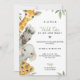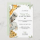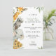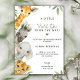 Baby shower invitation with watercolor animals: giraffe, zebra, elephant, and lion cub. Text reads, "A little wild one is on the way!" Light, playful tone.