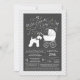 ¡Incluya al hermano mayor o a la hermana bebé de piel en la celebración con este adorable diseño irlandés de ducha de perro Kerry Blue Terrier! Perfecto para un amante de los cachorros con un bebé en camino. El irlandés Kerry Blue Terrier se encuentra al lado de un adorable carruaje vintage. El fondo gris de la pizarra lo convierte en un lugar perfecto para una ducha de matrimonio o una ducha de matrimonio.