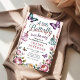 Celebra la llegada de tu pequeña mariposa con esta encantadora invitación de baby shower. Con delicadas flores de acuarela, mariposas pastel revoloteando y letras caprichosas, este diseño captura perfectamente la belleza y la alegría de los nuevos comienzos. Ideal para un baby shower de primavera, floral o con tema de jardín, añade un toque suave y femenino a tu celebración. ¡Personaliza todos los detalles para hacerlo único!