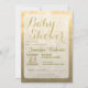 Un diseño elegante, elegante e intemporal para una ducha de bebé con colores dorados de bokeh con letras doradas. Nota: Esta es una imagen gráfica y no contiene ningún purpurina desordenado.