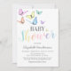 Invitaciones modernas y coloridas para baby shower con un fondo blanco liso que se puede cambiar a cualquier color, mariposas de colores arcoíris pastel de moda y una plantilla adorable para baby shower.==================================================================================== Encontrarás otros artículos que coinciden en mi tienda www.zazzle.com/special_stationery, sin embargo, si no puedes encontrar lo que estás buscando, por favor contáctame.