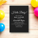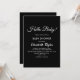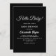 Esta elegante invitación Baby Shower en blanco y negro es perfecta para un Baby Shower moderno. el diseño sencillo presenta una elegante caligrafía en blanco sobre un fondo negro.