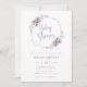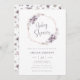Invitación a Baby Shower púrpura. Suave, soñadora y romántica, esta elegante invitación a la ducha de bebé cuenta con una preciosa cortina de flores y hojas de acuarela pintada a mano en tonos monocromáticos de púrpura, ciruela y tintas suaves con un texto y un guion púrpura a juego. La parte trasera de la invitación incluía un patrón caprichoso. Encontrar elementos coincidentes en la Colección Boda Botánico Elegante Púrpura.