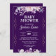 Invitación Baby Shower morado oscuro con flores