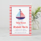 Invitación Baby Shower Nautical Red White y Blue Sailboat
