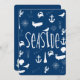 Playa náutica de mar y temática oceánica en azul marino y blanco