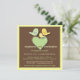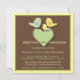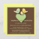 Una bonita familia de pájaros en tonos neutros de verde y amarillo se encargan y esperan para invitar a su huésped a una ducha de pareja.