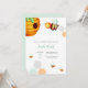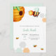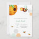 Invitación a una ducha de bebé con un tema de abejas. Muy lindo en tonos de naranjas, grises y verdes. Ilustrado y diseñado por Patricia Álvarez.