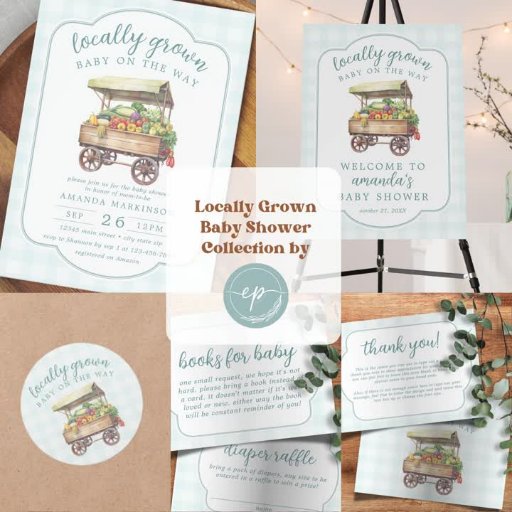¡Celebra un bebé dulce en el camino con esta encantadora invitación a la ducha de bebé "de cosecha local"! Con una granja acuática repleta de frutas y verduras coloridas, este diseño rústico es perfecto para los amantes de la naturaleza: duchas de bebés con temática de jardín o de los padres. Está rodeado por un suave fondo de gingham azul y ofrece una cálida y saludable estética con un estilo de casa de campo vintage. Personalizable completo a través de Zazzle, esta invitación está disponible como invitaciones impresas profesionalmente entregadas a su puerta o como una descarga digital conveniente que puede imprimir en casa o enviar electrónicamente. Ideal para una ducha neutral en cuanto a género o para celebraciones de temporada como duchas de primavera o otoño, este diseño aporta una acogedora atmósfera de mercado y un ambiente fresco de la granja a su día especial.
