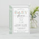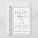 Invitación a la ducha para bebés con efecto neutro en género diseñada como portada de un libro en verde sabio y gris. Ideal para una biblioteca construyendo una ducha de bebé. Para ver los elementos coincidentes, visite https://www.zazzle.com/store/violinevents