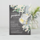 Pequeña y adorable cacahuete Invitación a la ducha para bebés con el elefante más dulce que duerme en el baúl de su madre con hojas de eucalipto y flores de margarita amarillas y blancas colocadas sobre un fondo de tiza a la moda que combina con un toque especial. Visite nuestra tienda para ver esta invitación para una ducha de bebé para chicas o niños.