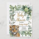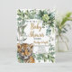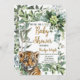 Este bonito diseño acuático cuenta con una cachorro de tigre dulce realista entre las hojas tropicales de la selva. Cuenta con una variedad de paletas de colores verdes, dorados, amarillos y naranjas y fuentes decorativas. La invitación es totalmente personalizable, así que puedes añadir tus propios toques personales.