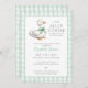 Esta encantadora ducha de bebé tiene un ganso lindo y un fondo de gingham verde. Diseñado por Thisisnotme©