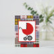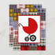 Una invitación neutra a la ducha unisex con un ilustracion de un coche de bebé rojo sobre un fondo de adormidera de paja. Personalice el texto con los detalles de su ocasión.