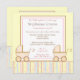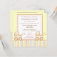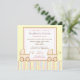 ¡Dos veces más agradable! Esa es la invitación de esta invitación a la ducha de bebé que tiene dos adorables carritos rosas con rayas rosas, azules, amarillas y marrones en un fondo amarillo.