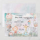 Los pasteles de bonito hacen de esta fantasía de animales de safari divertidos y lindos una delicia. Visiones de quequitos, caramelos y globos con elefante, hipopótamo, león, jirafa, rinoceronte y mono, todos cubiertos con su atuendo fiesta. Los bonitos tonos rosa pastel, el turquesa y el buttercup crean un ambiente acogedor y acogedor para la personalizado Baby Shower. Personaliza todos los detalles, incluyendo el nombre del honorable y el evento que se celebra.