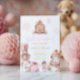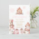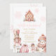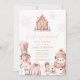 Invite a los huéspedes a una acogedora celebración con esta invitación de Baby Shower a Pink Winter Wonderland. Con un encantador muñeco de nieve, una casa con pan de jengibre y adornos de Navidad rosados, este dulce diseño marca el tono perfecto para una ducha de bebé en invierno. Personalice fácilmente los detalles de su evento. Ideal para fiestas, duchas infantiles de temática invernal. - Diseñado por Cava Fiesta Design
