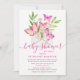 Invitación Baby Shower Por Correo Mariposa Sobre Floral Rosa