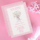 Invitar a sus seres queridos a celebrar la llegada de una niña dulce con esta elegante invitación a la ducha de bebé con tonos rosas suaves, delicados florales del aliento del bebé y brillantes acentos purpurinas —perfecta para celebrar la llegada de una dulce bebé.