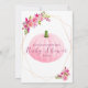 Dulces flores de flores rosadas de bebé y marcos geométricos de oro rosa para celebrar en una ducha de bebé. Una gran calabaza rosa en el centro. Editar áreas de texto para crear un juego único y especial de fiesta de ducha de bebé de Who Knows Best?