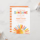Da la bienvenida al rayo de sol más reciente en tu vida con nuestras invitaciones para baby shower de verano únicas y elegantes. Estas invitaciones, que presentan un sol juguetón y colorido sobre un fondo blanco limpio, capturan perfectamente la alegre anticipación de una nueva llegada. ¡Aún mejor, nuestra plantilla moderna hace que personalizar tus invitaciones sea pan comido, para que puedas pasar menos tiempo planificando y más tiempo celebrando el próximo paquete de alegría!