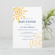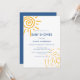 Moderna invitación a la ducha de sol azul y amarillo. Este diseño es perfecto tanto para un niño como para una niña. Haga clic en el botón personalizar para personalizar este diseño con sus detalles. Para cambiar los colores y tipos de letra, elija editar este diseño más adelante para abrir opciones adicionales de personalización.