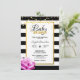 Elegante diseño con un falso confeti dorado y fondo de rayas negras y blancas con rosa rosa caliente. Chimenea de bebé / tarjetas de invitación de fiesta para bebés en un diseño floral moderno, moderno y elegante. Unisex, neutro en género, revelación de género, niño o chica. Falsa redacción de Relieve metalizado de oro y confeti. Todo el texto se puede editar con tipo de letra y tamaño. ¡No te olvides de conseguir pegatinas de favores!