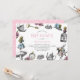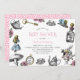 Alicia vintage en los ilustraciones de Alicia, el Conejo Blanco, una llave, ver y rosa rosas con un patrón de puntos polka rosado al revés. Personalice este diseño cambiando el texto, el color del texto o el color de fondo en el reverso. Ideal para cumpleaños, fiestas de té, duchas para bebés y más.