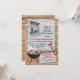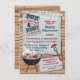 Un "bollo en el horno y hamburguesas en la parrilla" barbacoa invitaciones para una ducha de bebé. Parrilla de barbacoa para fumadores, luces de manga y papel antiguo sobre un fondo rústico de madera de pino. Perfecto para una ducha de bebé al aire libre o en el patio trasero.