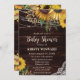 Acuarela Rustic Sunflowers y String Lights diseño sobre un fondo de madera marrón oscuro con encaje blanco