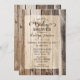 Diseño rústico de tarjetas de invitación a la ducha de bebé con tablones de madera de granero. El diseño de la parte posterior tiene grabado cardíaco y monograma sobre tablas de madera de granero.