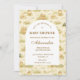 Un dulce diseño de safari al estilo de un cuento infantil que presenta suaves animales bebé en acuarela, incluyendo leones, jirafas y elefantes rodeados de suave vegetación de la jungla y un delicado fondo botánico. La paleta cálida y neutral de crema, oro miel y suave oliva crea un estética atemporal inspirada en la naturaleza, mientras que el diseño arqueado elegante proporciona un hermoso espacio para los detalles del evento.