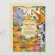 Invitación de Baby Shower al tema del Safari de la jungla. Celebre la próxima llegada de su pequeño paquete de alegría con esta caprichosa invitación a la ducha de animales de safari con temática de animales de safari. El diseño incluye adorables animales de la selva como jirafas, cebras, elefantes y hojas rústicas de vegetación tropical con una mesa para el fiesta de la ducha para bebés.